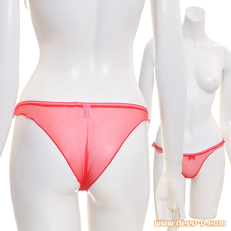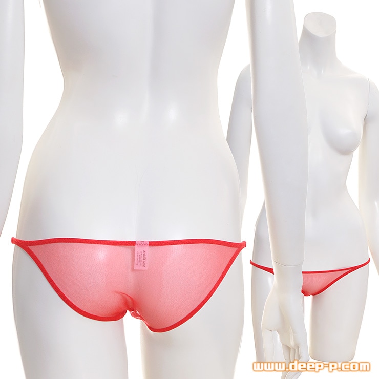 お尻途中までしか上がらないの 下尻だけギリ! 極浅なビキニバックパンティ スパークハーフシースルー 赤色 ラポーム