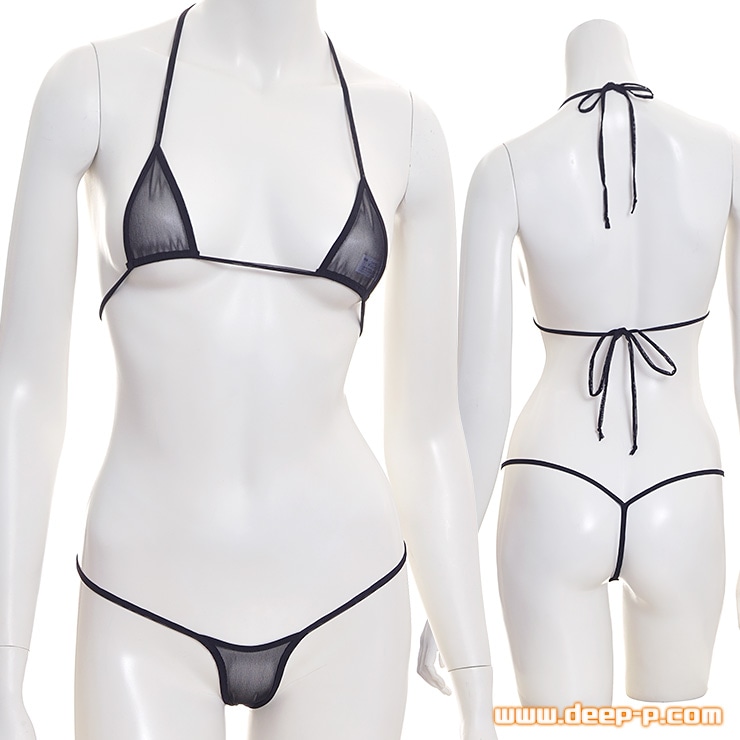 お肌スケスケですので着エロ以上! 着エロ御用達のマイクロビキニ 三角トップス&ミニGスト パワーネット ブラック ターキー
