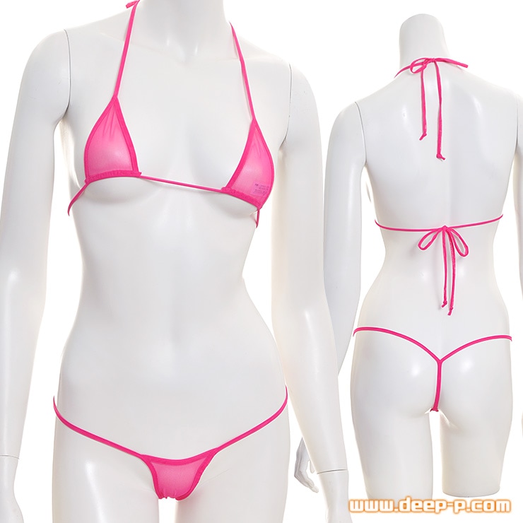 お肌スケスケですので着エロ以上! 着エロ御用達のマイクロビキニ 三角トップス&ミニGスト パワーネット ローズピンク ターキー