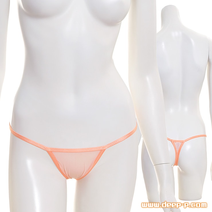 凹凸が少なくってアンダーショーツ風 シンプルなミニTバックパンティ 透け感が好いクリアースキン オレンジ ターキー