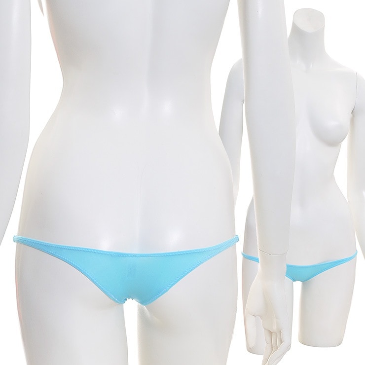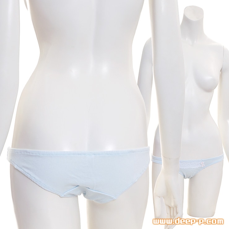 腰まわり細いからムニュってしちゃう ペッチャンコな浅ーいビキニバックパンティ サラサラ薄々伸び伸び 薄い水色 ラポーム