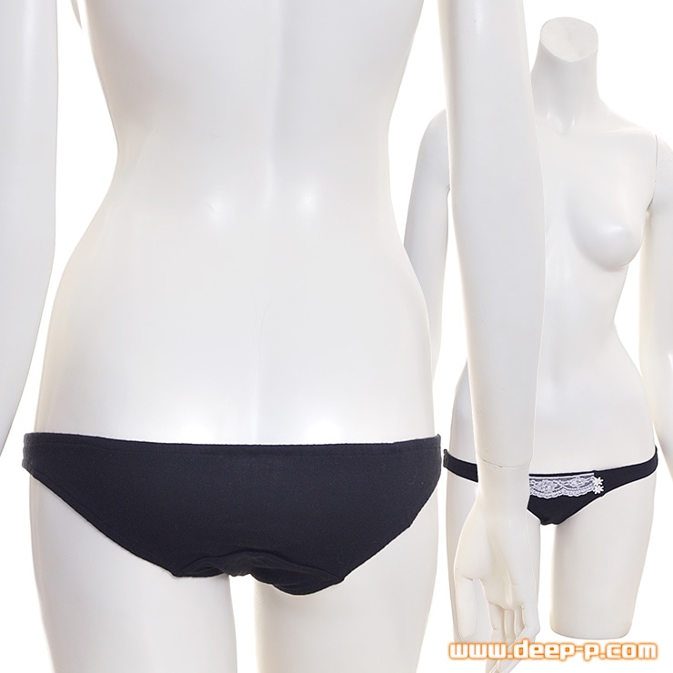 スキャンティ 前に白レース飾り入り ローティーン風浅ーいフルバックパンティ お肌に優しいコットン地 黒色 ラポーム