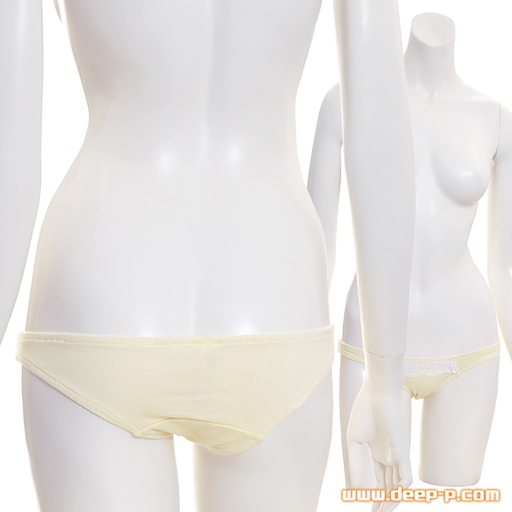 スキャンティ 前に白レース飾り入り ローティーン風浅ーいフルバックパンティ お肌に優しいコットン地 クリームイエロー色 ラポーム