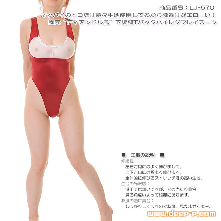 強調され更に微透け感が非常にえちえち度を高めてくれてます。下腹部は結構きわどいTバックプレイスーツ(レオタード)。