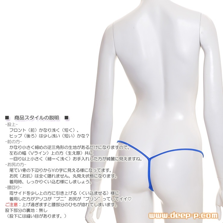 お尻Yバックだから曲線美強調 ミニGストリングパンティ 濡れた様な感じのスーパーウェット地 ブルー ターキー