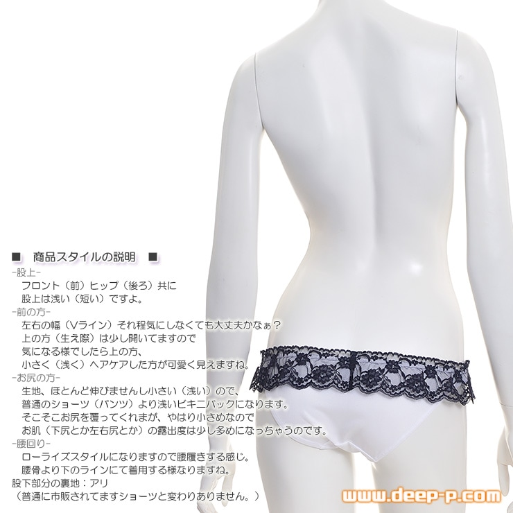 小さい(浅い)のでお肌(お尻-左右と下尻)の露出度、ムニっとハミ肉具合は多めになるかもよー。