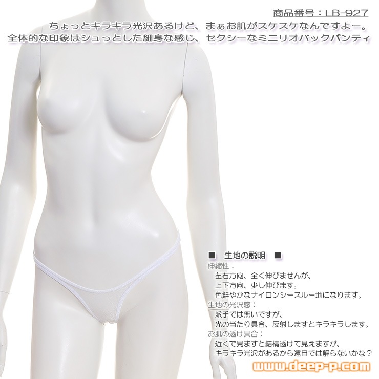 全体的な印象はシュってしてます シンプルでセクシーなミニリオバックパンティ スパークハーフシースルー 白色 ラポーム