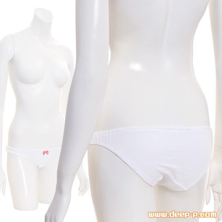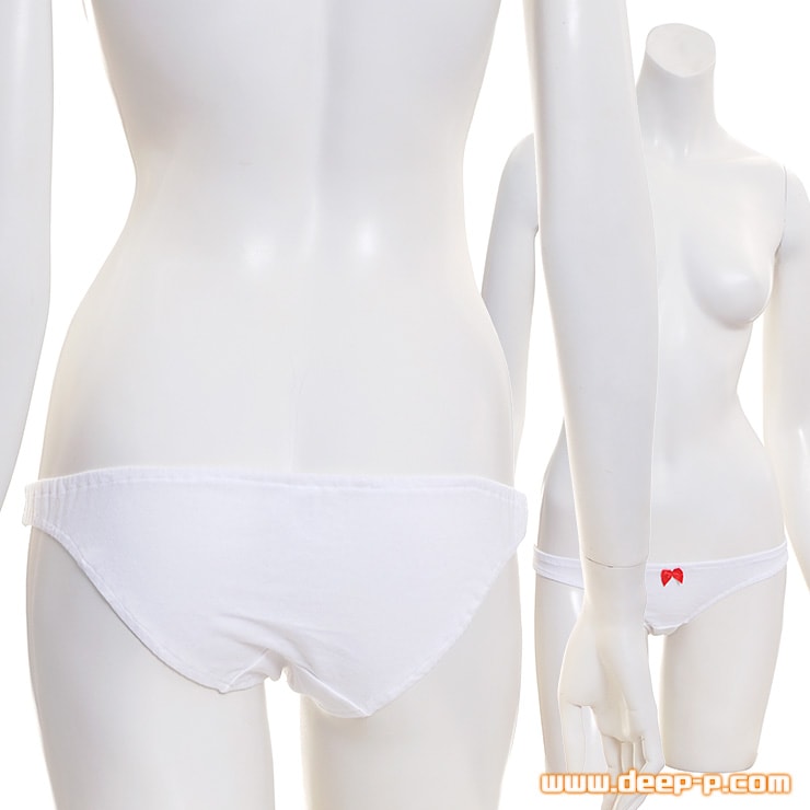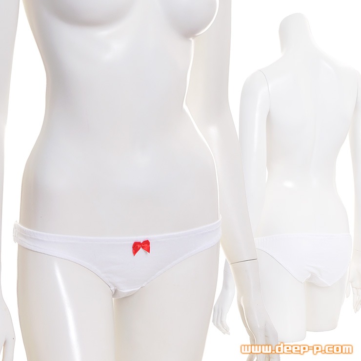 お菓子系グラビアの定番 赤いリボン飾り付き ローライズフルバックパンティ お肌に優しいコットン地 白色 ラポーム
