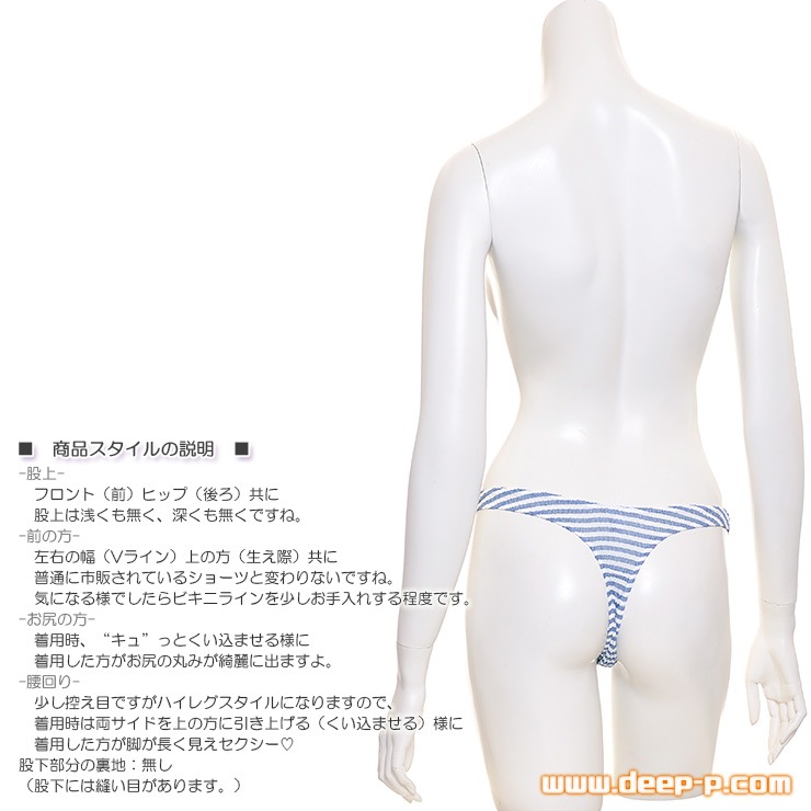 着用時、しっかり“キュッ”とお尻の割れ目にくい込ませる様に着用した方が、お尻の丸みが綺麗に出ますしセクシーです。