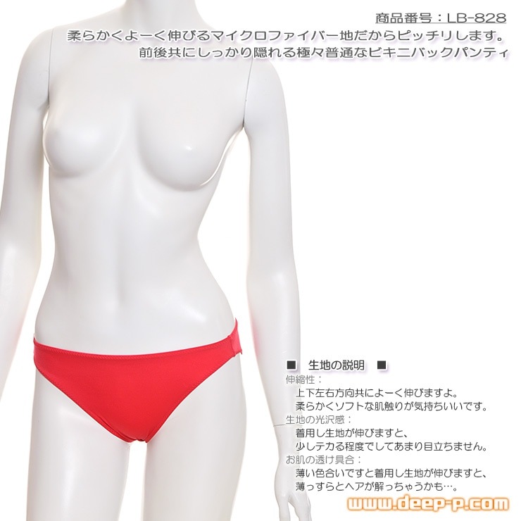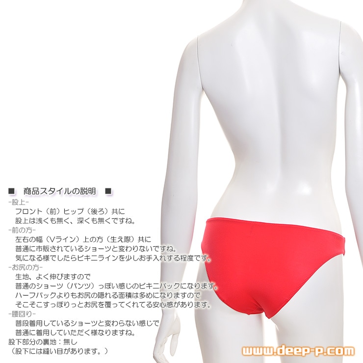 生地、伸縮性がありましてよく伸びますので、普通のショーツ(パンツ)っぽい感じのビキニバックスタイルになります。