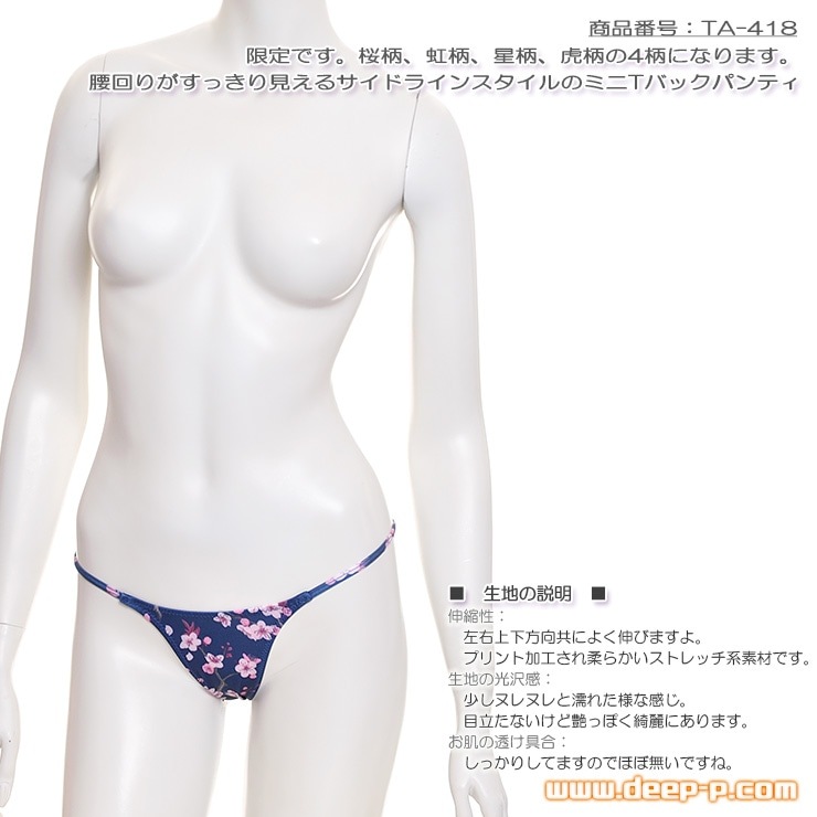 桜柄、虹柄、星柄、トラ柄 腰回りすっきりサイドラインミニTバックパンティ ヌレヌレ光沢YKS サクラ ターキー