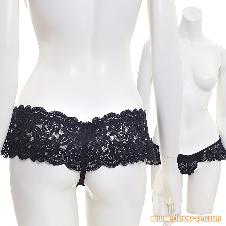 腰まわりレースのミニスカ風に装飾されてます お尻丸見えミニGストリングパンティー ストレッチレース 黒色 ラポーム