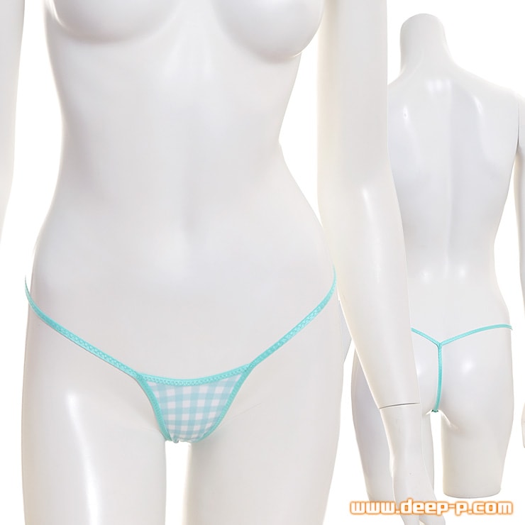 淡い色合いのギンガムチェック柄 凹凸目立たない平ゴム仕立て ミニGストリングパンティ ヌレヌレ光沢YKS ミント ターキー