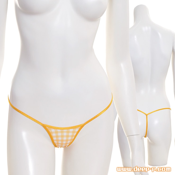 淡い色合いのギンガムチェック柄 凹凸目立たない平ゴム仕立て ミニGストリングパンティ ヌレヌレ光沢YKS オレンジ ターキー