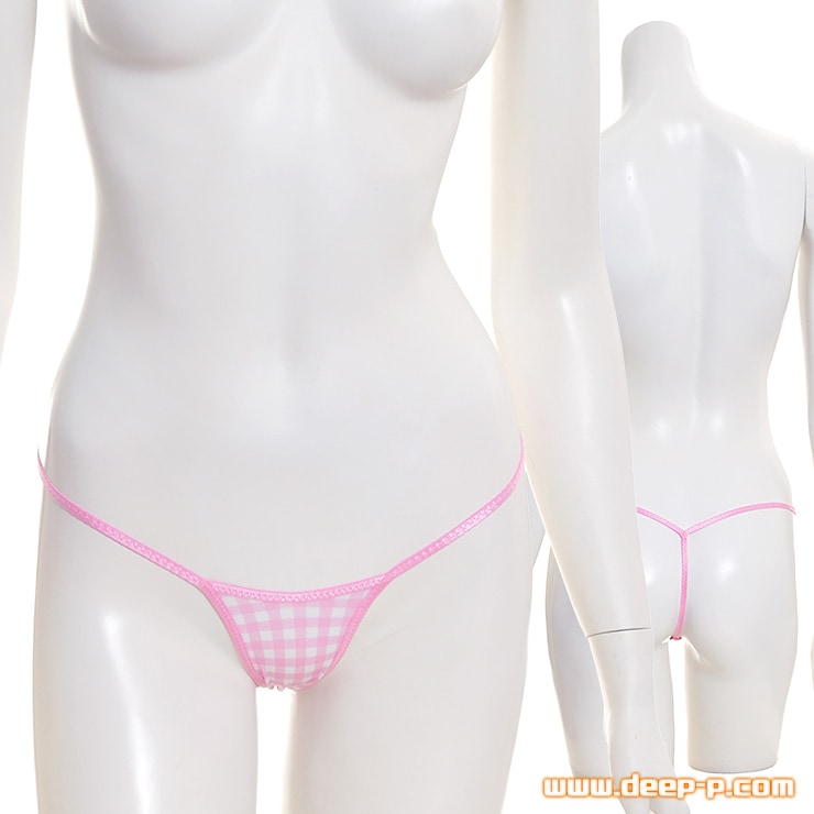 淡い色合いのギンガムチェック柄 凹凸目立たない平ゴム仕立て ミニGストリングパンティ ヌレヌレ光沢YKS ピンク ターキー