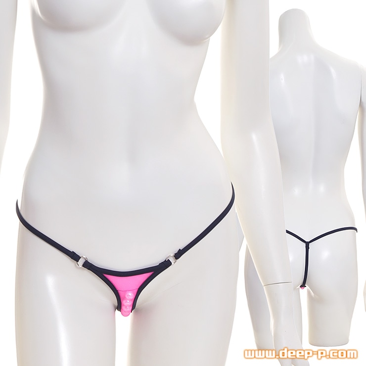 隠せる?隠せ無い?位置合わせしっかり 動く玉付きGストリングパンティー 細いゴムヒモだけ ホットピンク色 ラポーム