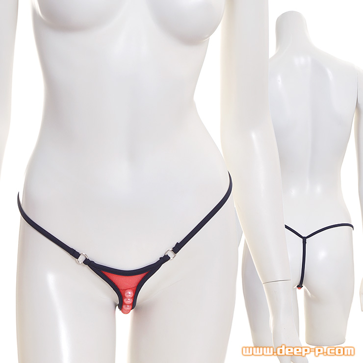 隠せる?隠せ無い?位置合わせしっかり 動く玉付きGストリングパンティー 細いゴムヒモだけ 赤色 ラポーム