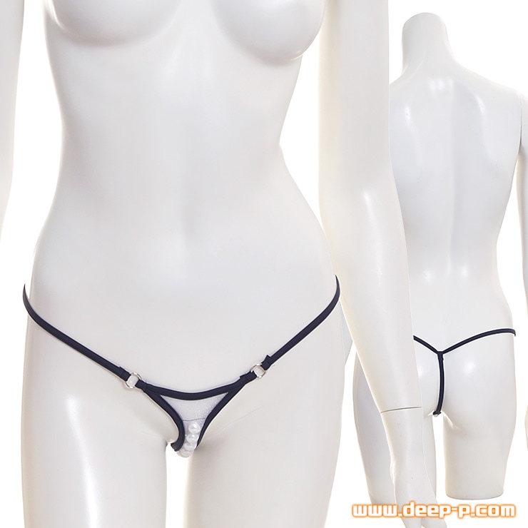隠せる?隠せ無い?位置合わせしっかり 動く玉付きGストリングパンティー 細いゴムヒモだけ 白色 ラポーム