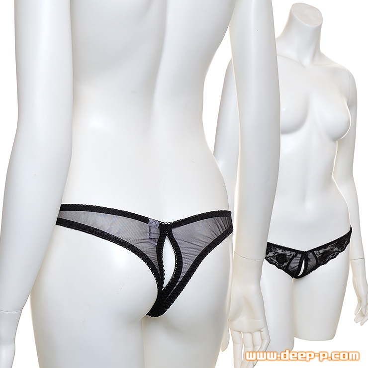 ローライズオープンハーフバックパンティ ちょうど好い感じの小ささ 花柄レースとシースルー地 黒色 | ラポーム | ●