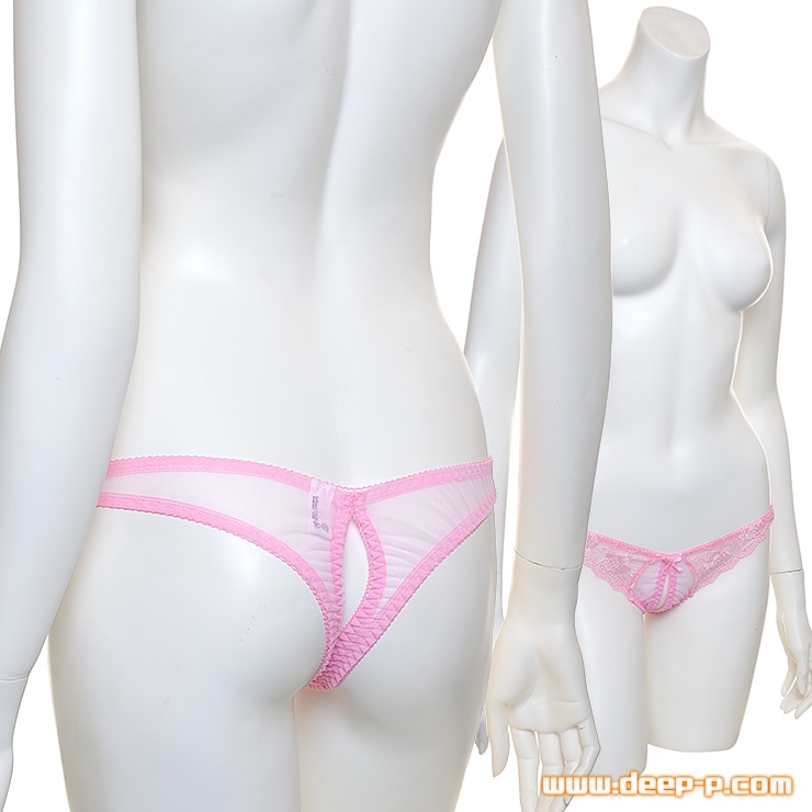 ローライズオープンハーフバックパンティ ちょうど好い感じの小ささ 花柄レースとシースルー地 ピンク色 | ラポーム | ●