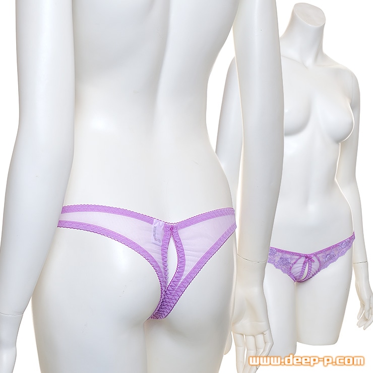 ローライズオープンハーフバックパンティ ちょうど好い感じの小ささ 花柄レースとシースルー地 紫色 | ラポーム | ●