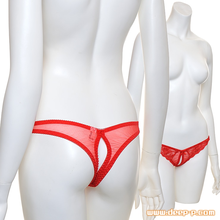 ローライズオープンハーフバックパンティ ちょうど好い感じの小ささ 花柄レースとシースルー地 赤色 | ラポーム | ●