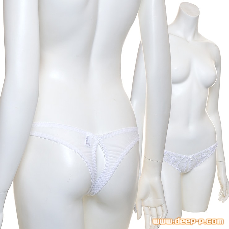 ローライズオープンハーフバックパンティ ちょうど好い感じの小ささ 花柄レースとシースルー地 白色 | ラポーム | ●