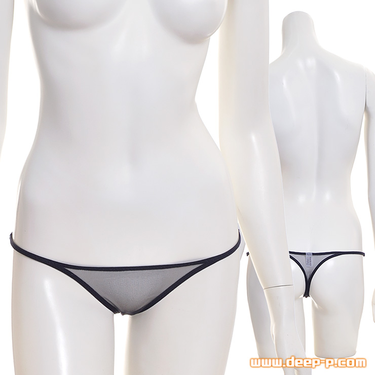 腰まわり細くムニュってしちゃう ペッチャンコな浅いビキニバックパンティ スパークハーフシースルー 黒色 ラポーム
