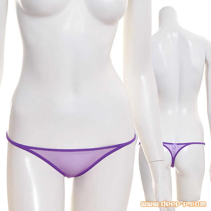 腰まわり細くムニュってしちゃう ペッチャンコな浅いビキニバックパンティ スパークハーフシースルー 紫色 ラポーム