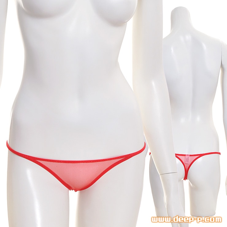腰まわり細くムニュってしちゃう ペッチャンコな浅いTバックパンティ スパークハーフシースルー 赤色 ラポーム