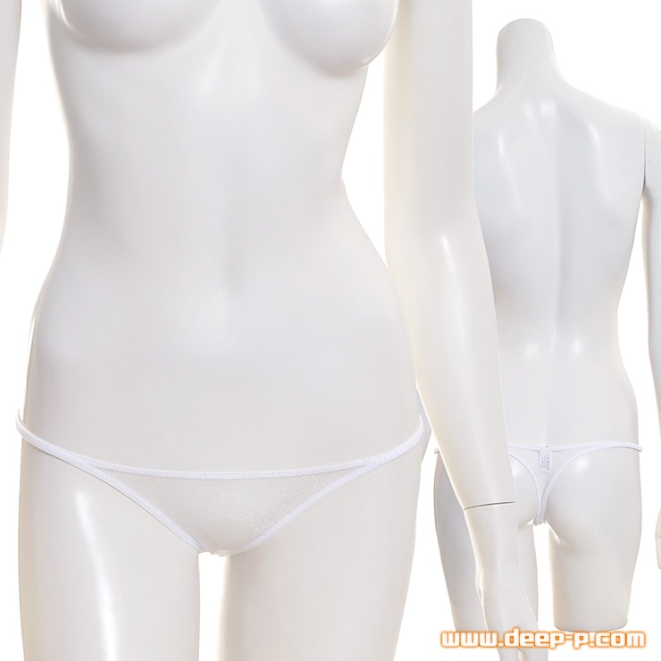 腰まわり細くムニュってしちゃう ペッチャンコな浅いビキニバックパンティ スパークハーフシースルー 白色 ラポーム