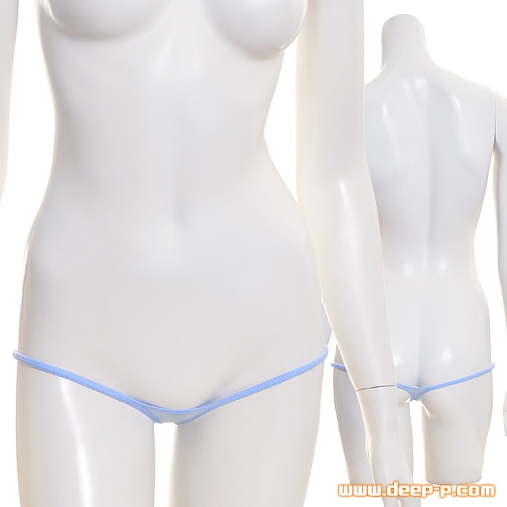 ムニってくい込み確定 極浅極小Tバックパンティ 股下マチ部分細ーい クリアスキン ブルー ターキー