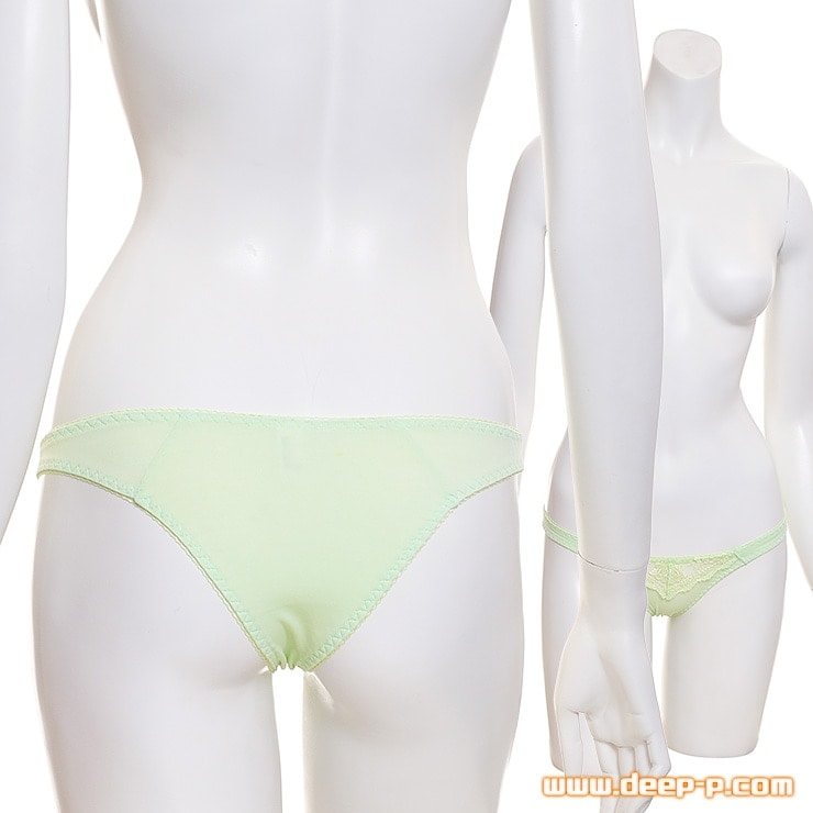 丁度良い小ささで前にレース飾り 可愛いミニハーフバックパンティー スーパーソフトストレッチSSS 黄緑色 ラポーム