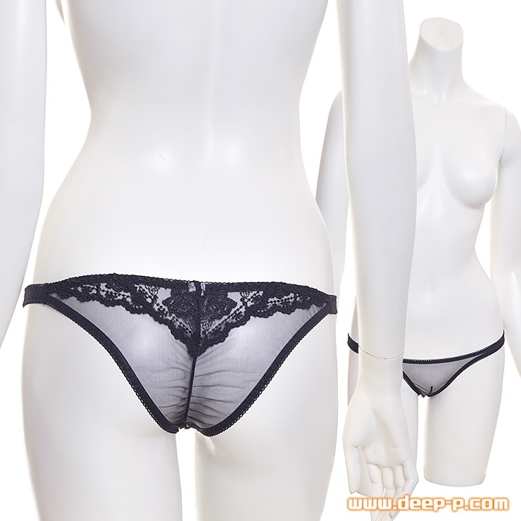 後ろにレース飾りで前はスケスケ 途中からの線がHなビキニバックパンティー 花柄レースシースルー 黒色 ラポーム