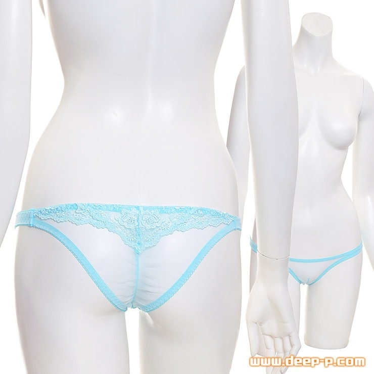 後ろにレース飾りで前はスケスケ 途中からの線がHなビキニバックパンティー 花柄レースシースルー 水色 ラポーム