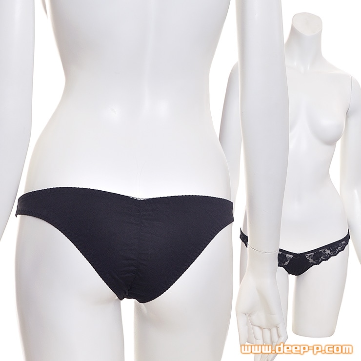 左右レース地が引き立てます 真ん中くい込み強調縦線入り 浅いハーフバックパンティー SSSレース 黒色 ラポーム