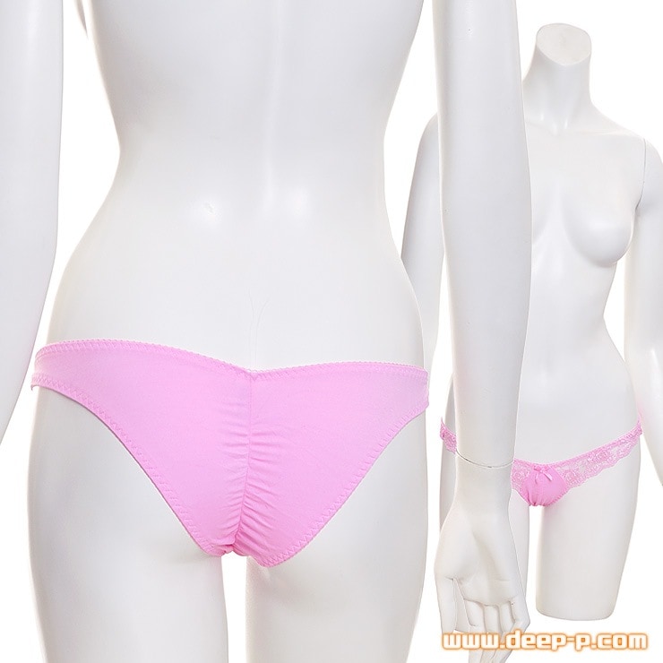 左右レース地が引き立てます 真ん中くい込み強調縦線入り 浅いハーフバックパンティー SSSレース ピンク色 ラポーム