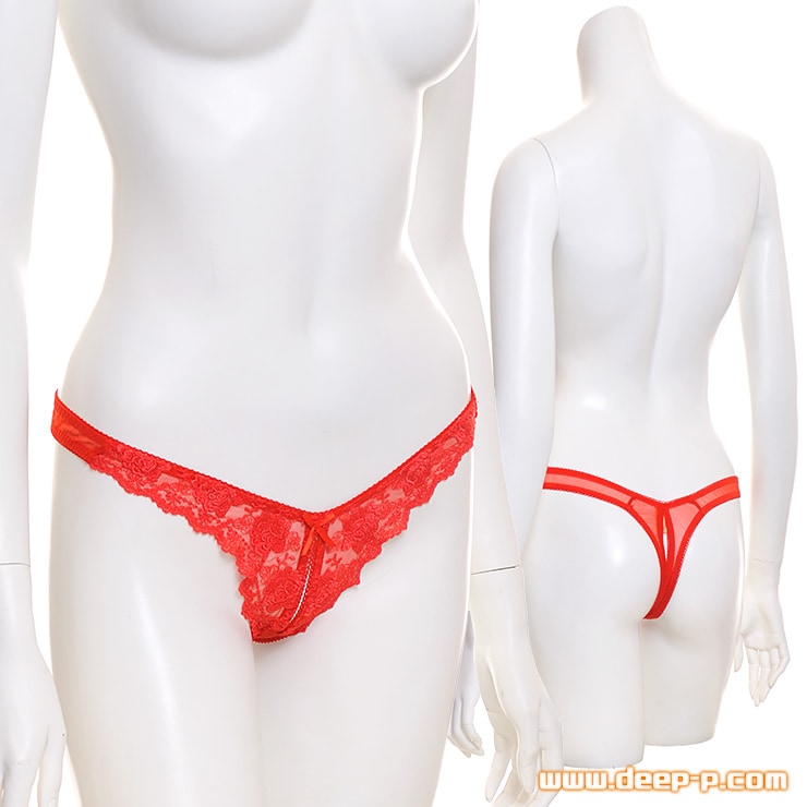 前部分の花柄レース地は、股下、、、アソコ上辺りまで続いています。目を惹きますよね。