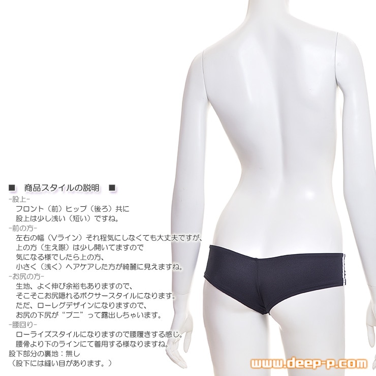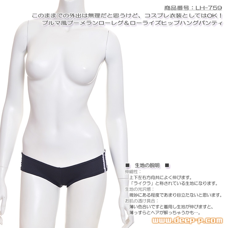 ブルマ風でブーメランスタイル。着エロ衣装向けのローレグ&ローライズヒップハングパンティー。