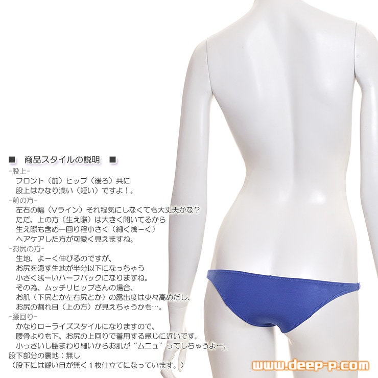 お尻の方は、ちょっとお尻の割れ目(上の方)が見えちゃう?ってくらい浅ーいミニハーフバックパンティー。