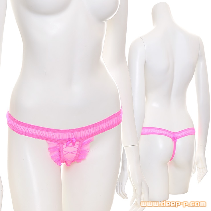 お尻途中までしか上がらないの 下尻だけギリ! 極浅なビキニバックパンティ スパークハーフシースルー ホットピンク色 ラポーム